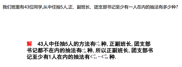 对于含有否定词语的问题,还可以从总体中把不符合要求的减去,此时应注意既不能多减又不能少减。