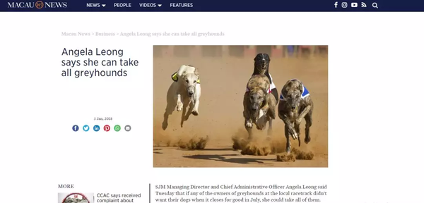 “研究博彩和旅游业的澳门大学教授德斯蒙德·拉姆(Desmond Lam)表示,动物保护意识日益增强,减少了赛狗场的收入。